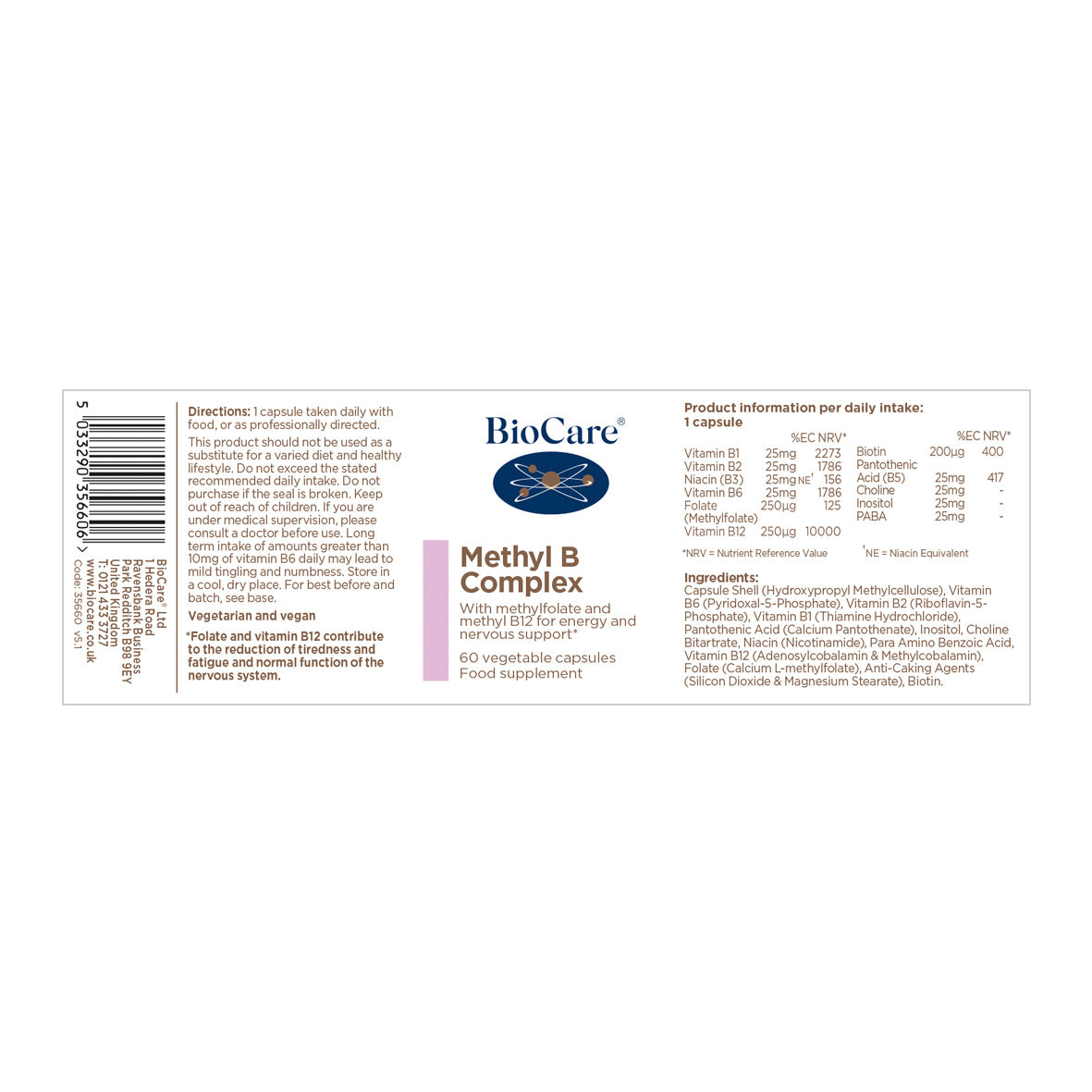 - Vitamin B12 (Adenosylcobalamin & Methylcobalamin) 250mcg